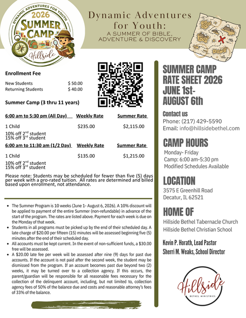 With flexible scheduling options, scholarship opportunities, and a safe, Christ-centered environment, Hillside’s D.A.Y. Summer Camp is the perfect place for your child to learn, explore, grow, and make great memories.